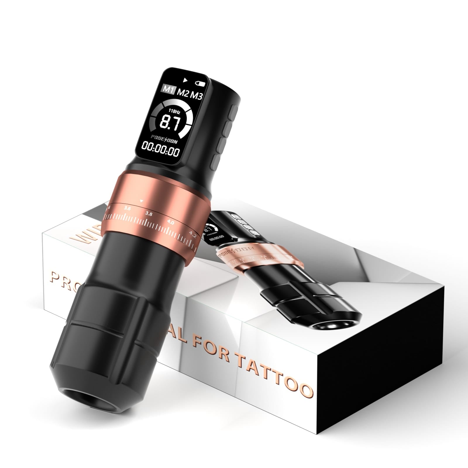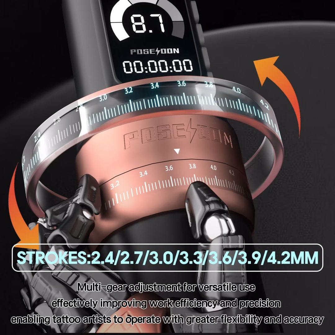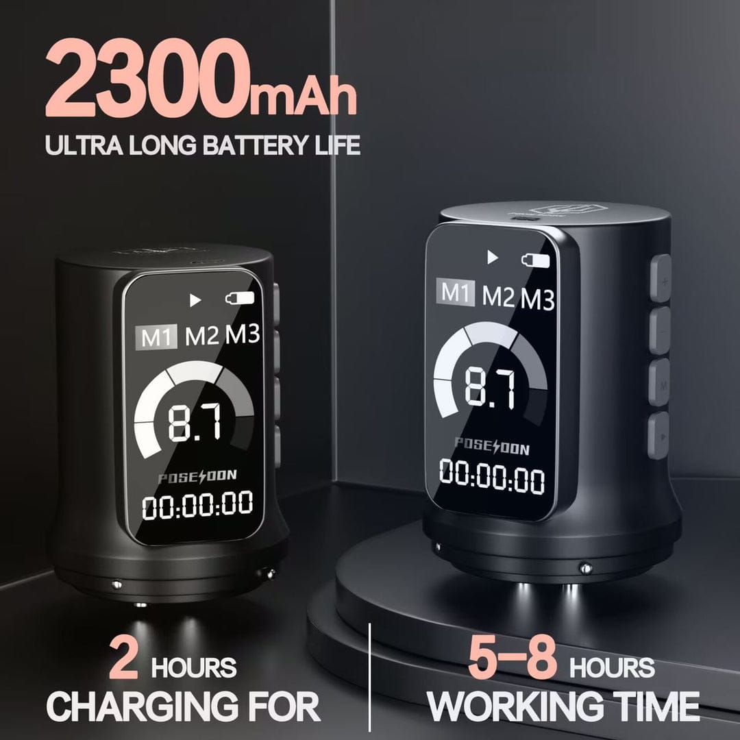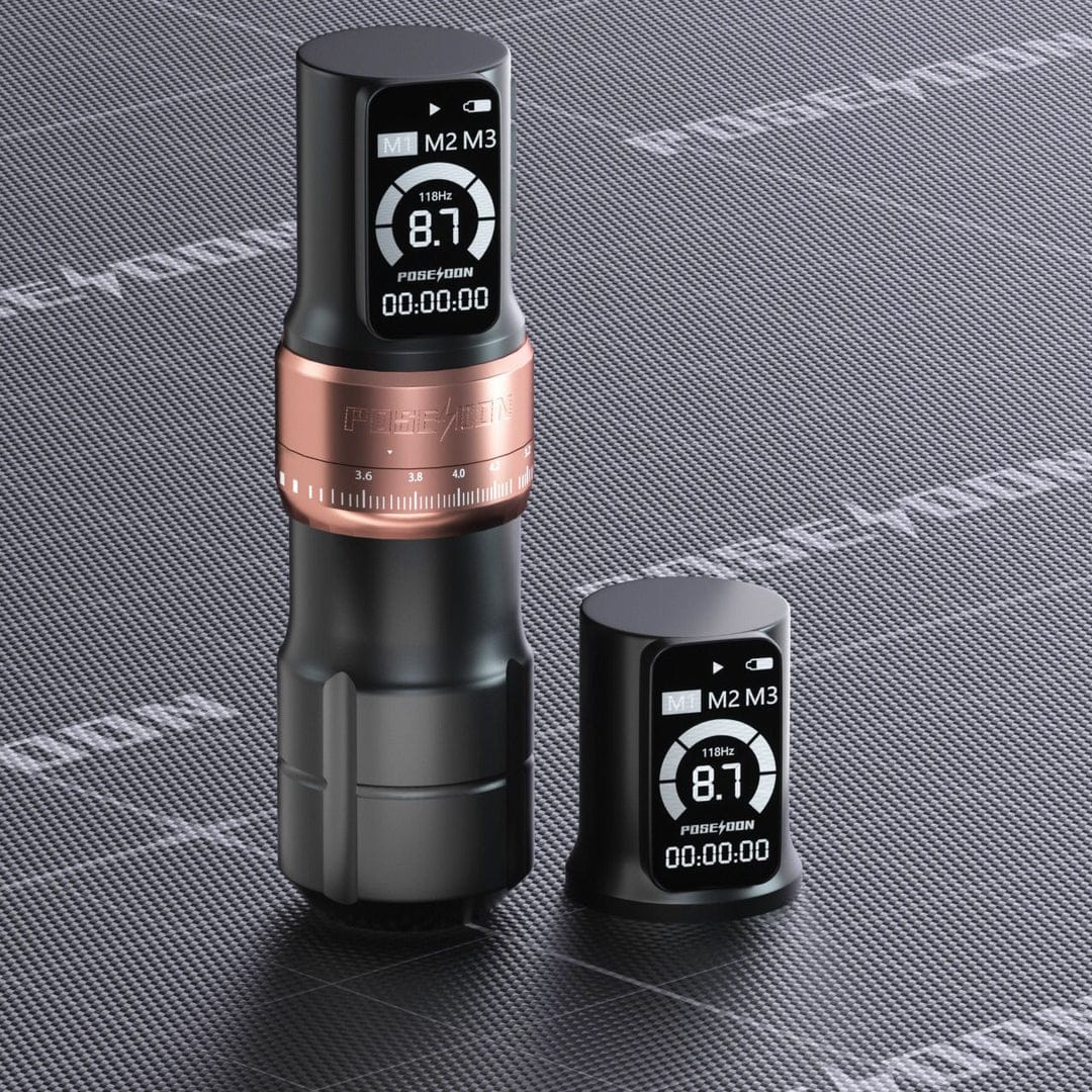 Macchina per tatuaggi wireless Poseidon a 7 tempi - Rosa con 2 batterie
